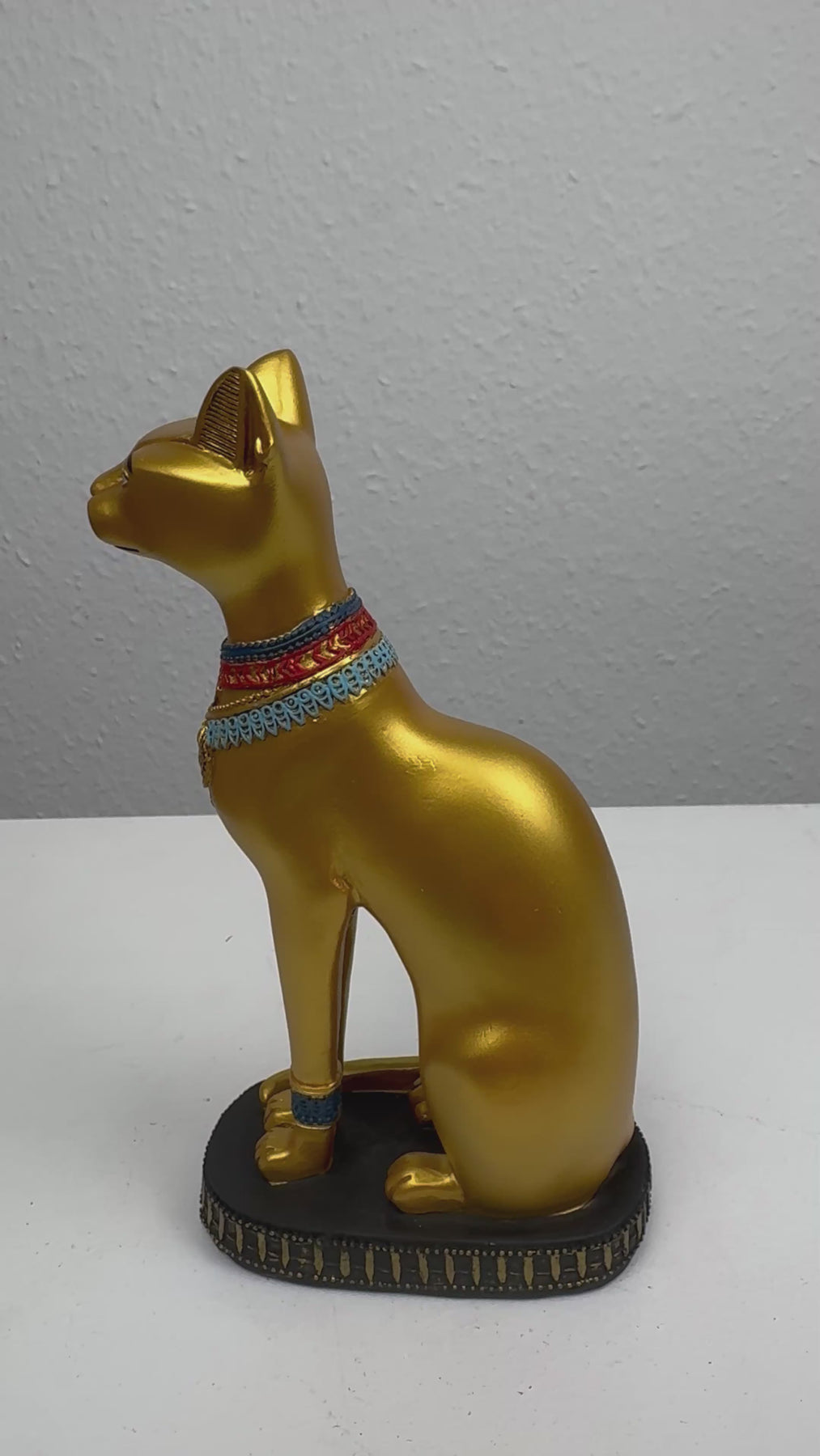 Rendez hommage à la déesse féline vénérée de l’Égypte ancienne avec cette élégante statue de Bastet. Symbole de protection, de fertilité et de grâce, Bastet est représentée dans sa posture classique, parée de bijoux traditionnels et de détails symboliques. Réalisée en résine durable, cette sculpture capte avec précision et élégance l’aura mystique de cette déesse bien-aimée. Parfaite pour les amateurs de mythologie, les passionnés de chats ou les collectionneurs de décoration spirituelle, cette pièce apporte une touche de magie ancienne et de richesse culturelle à tout intérieur. Idéale pour les bibliothèques, les autels ou les espaces décoratifs inspirés de l’art égyptien.