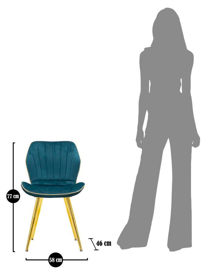 Lot de 2 chaises de salle à manger en velours bleu sarcelle avec pieds dorés – Paris Space