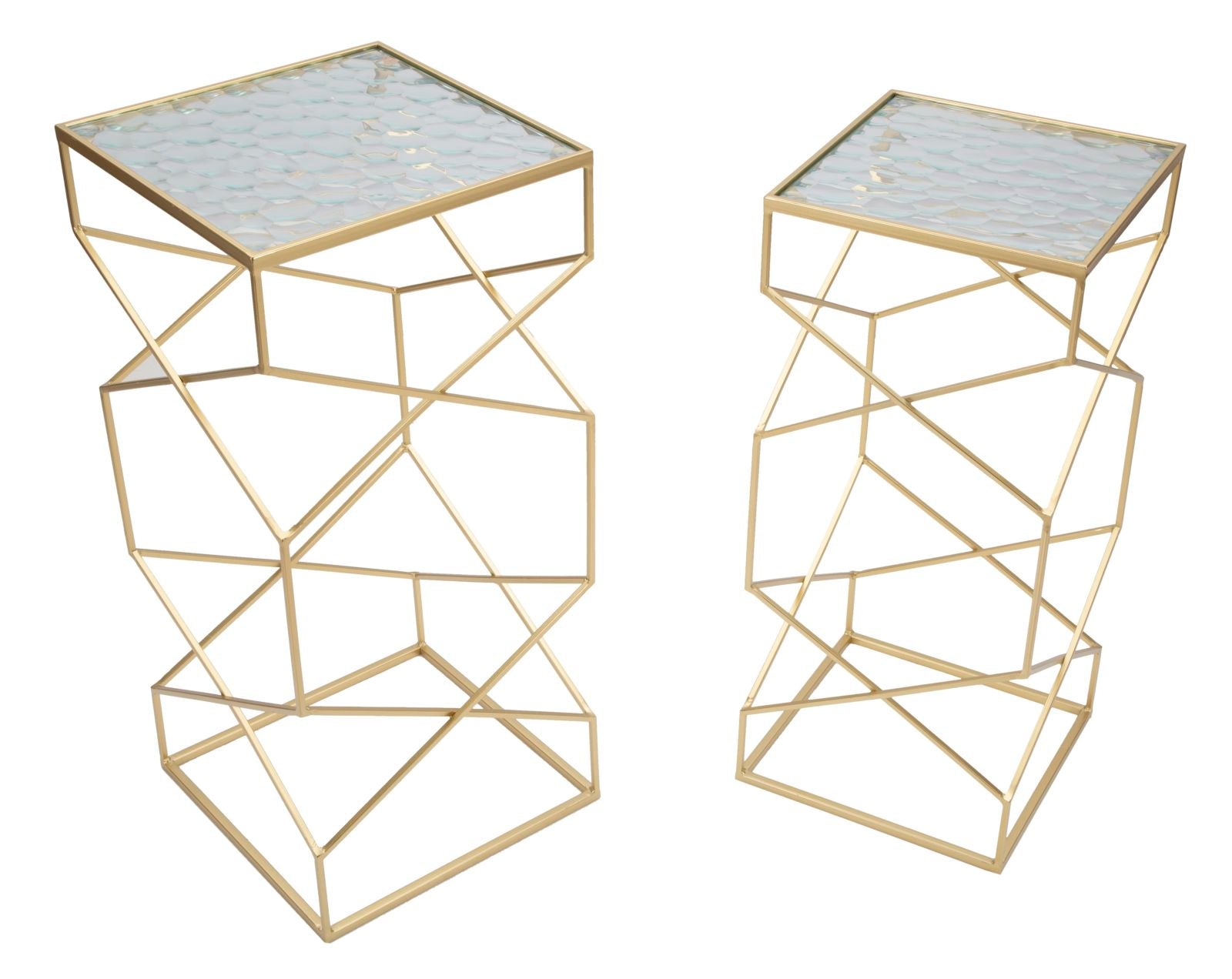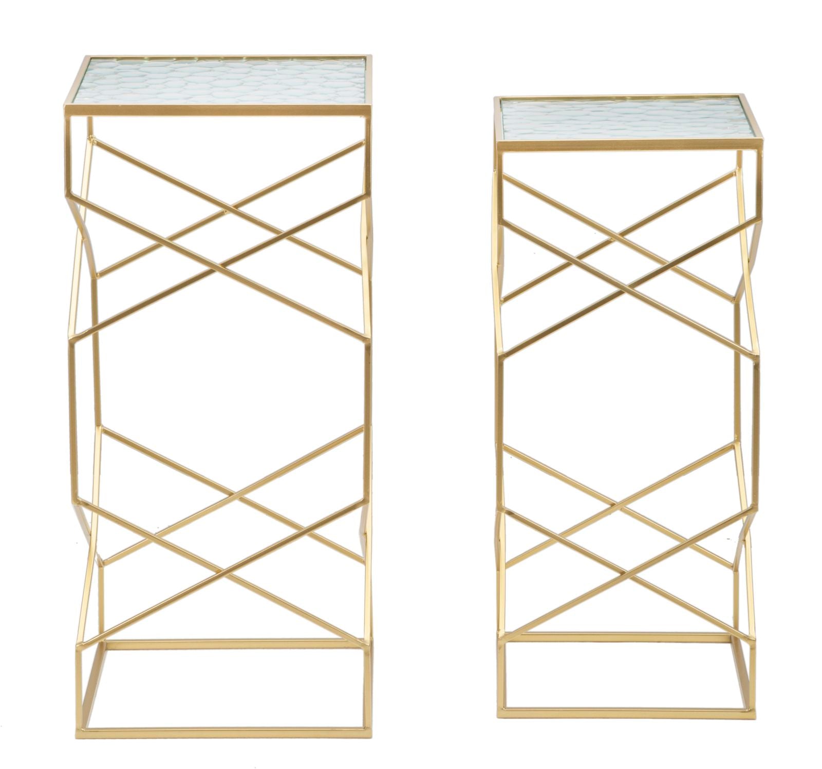 Lot de 2 tables d'appoint en verre avec base dorée – Collection Glassy