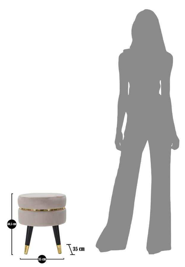 Tabouret rond en velours gris avec pieds dorés – Fauteuil d'appoint Paris