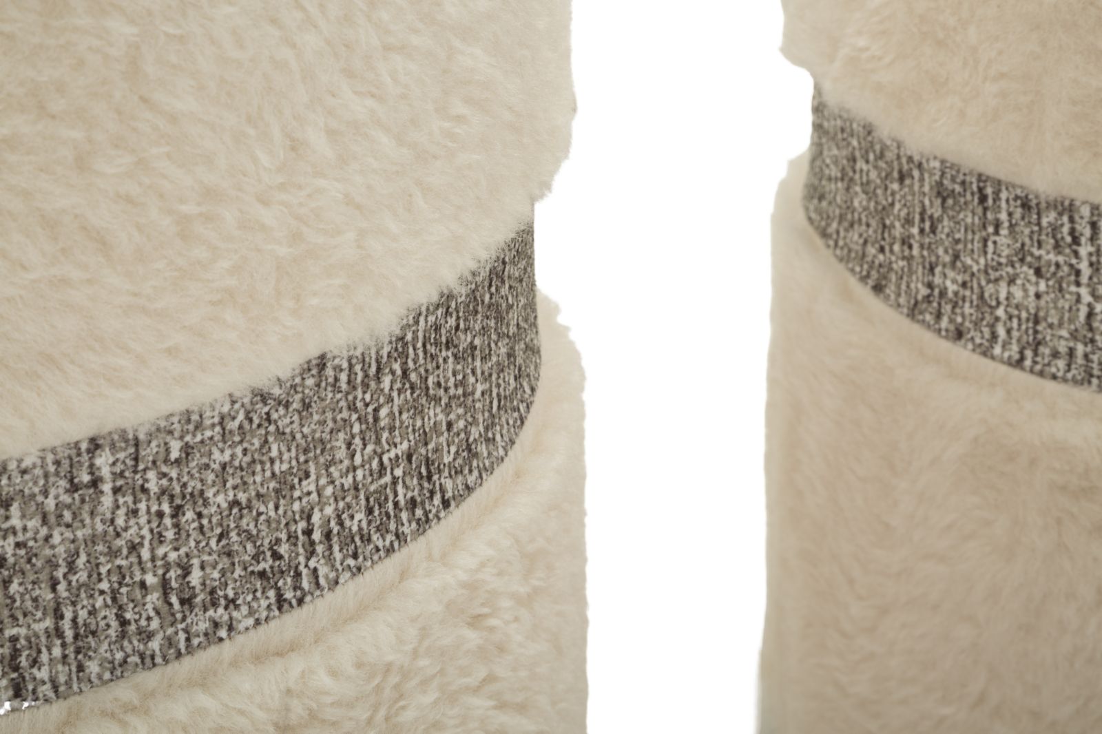 Doux comme un nuage, élégant comme un salon de montagne. L'ensemble Saint-Moritz allie confort et glamour avec une touche chic grâce à sa bande scintillante. Parfait pour les environnements chaleureux et sophistiqués.Bougeoir en métal doré aux élégantes décorations florales.