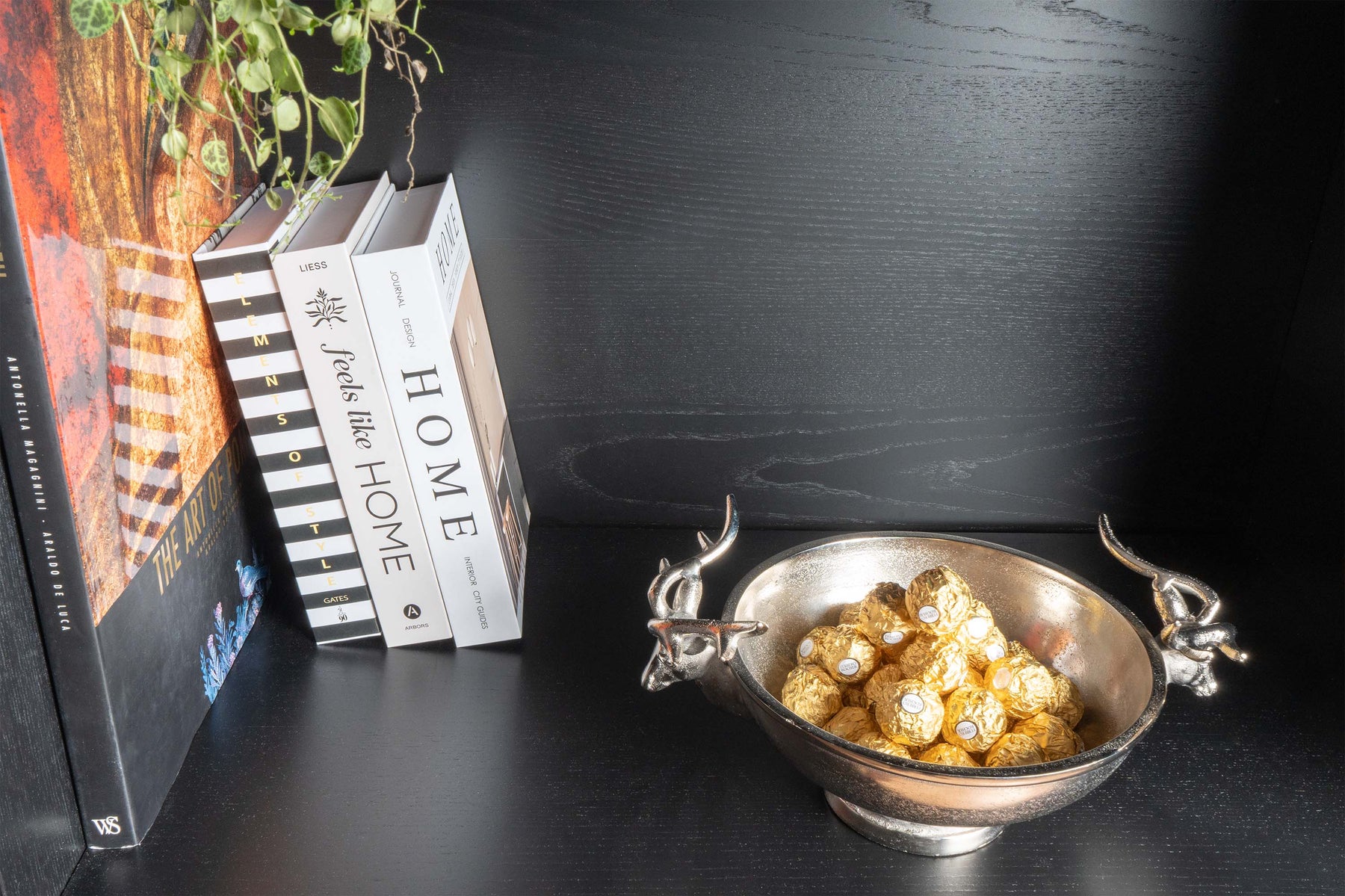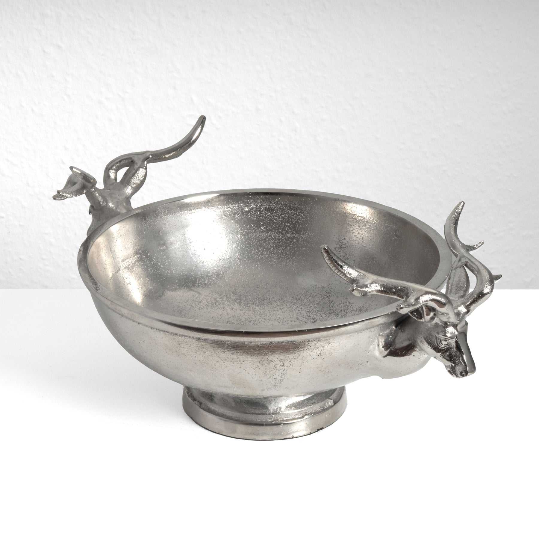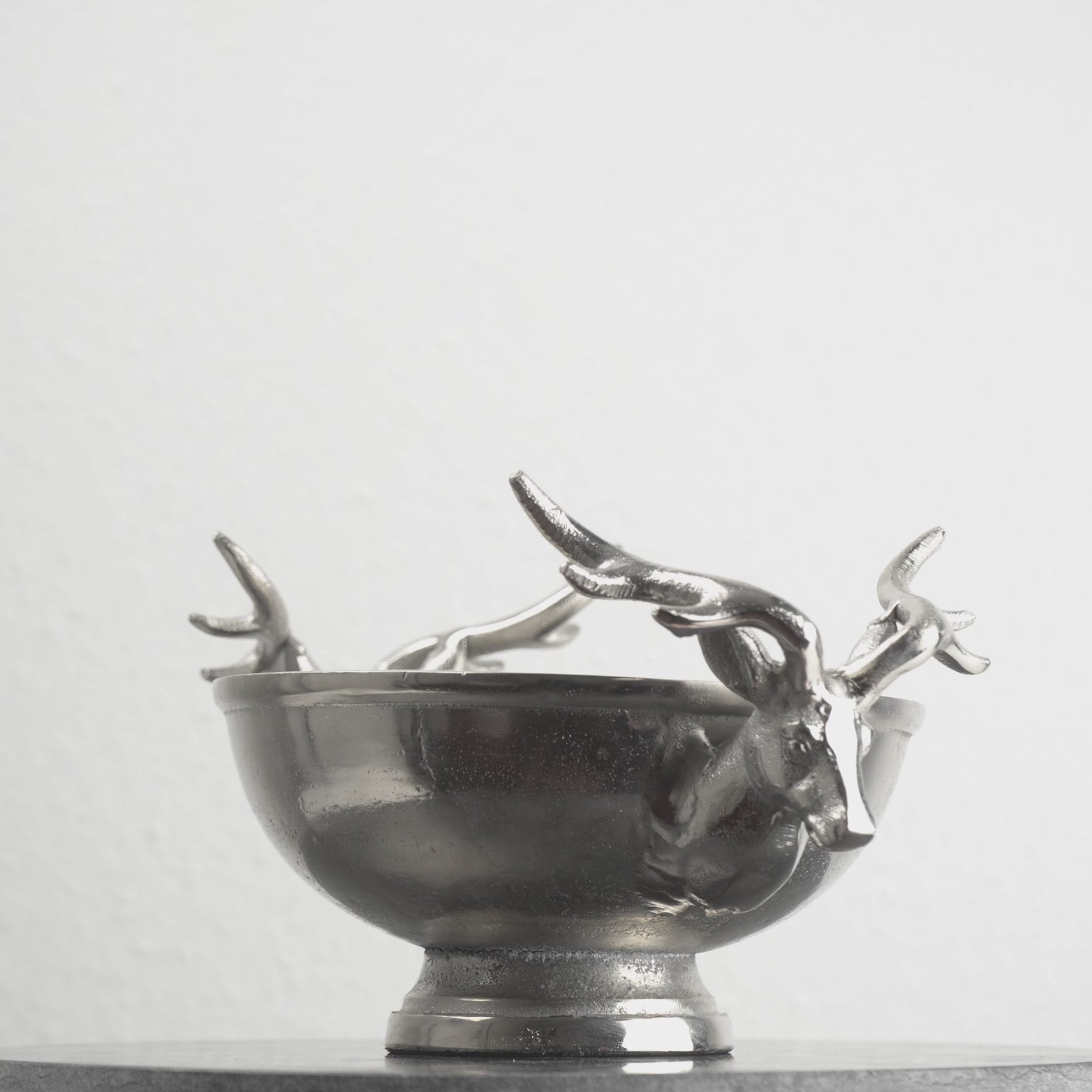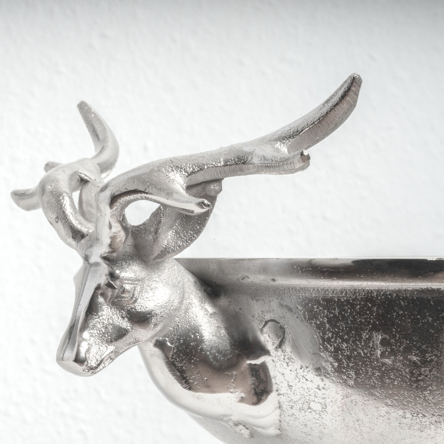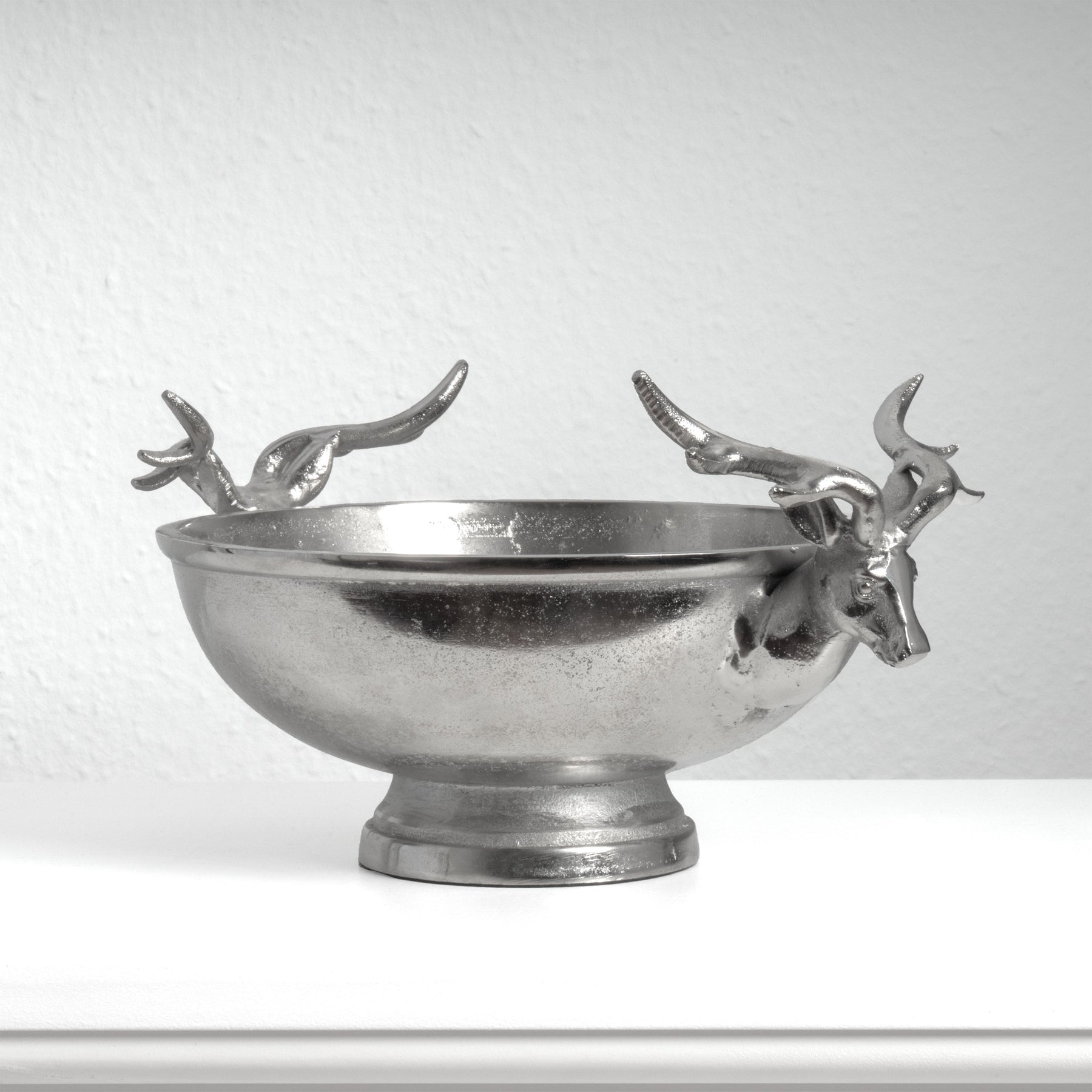 Idéale pour décorer une table, une console ou une cheminée, cette coupe s’utilise aussi bien comme objet fonctionnel que comme accent décoratif remarquable. Les têtes de cerf symbolisent la grâce et l’harmonie avec la nature, faisant de cette pièce un ajout parfait aux intérieurs rustiques raffinés ou contemporains.