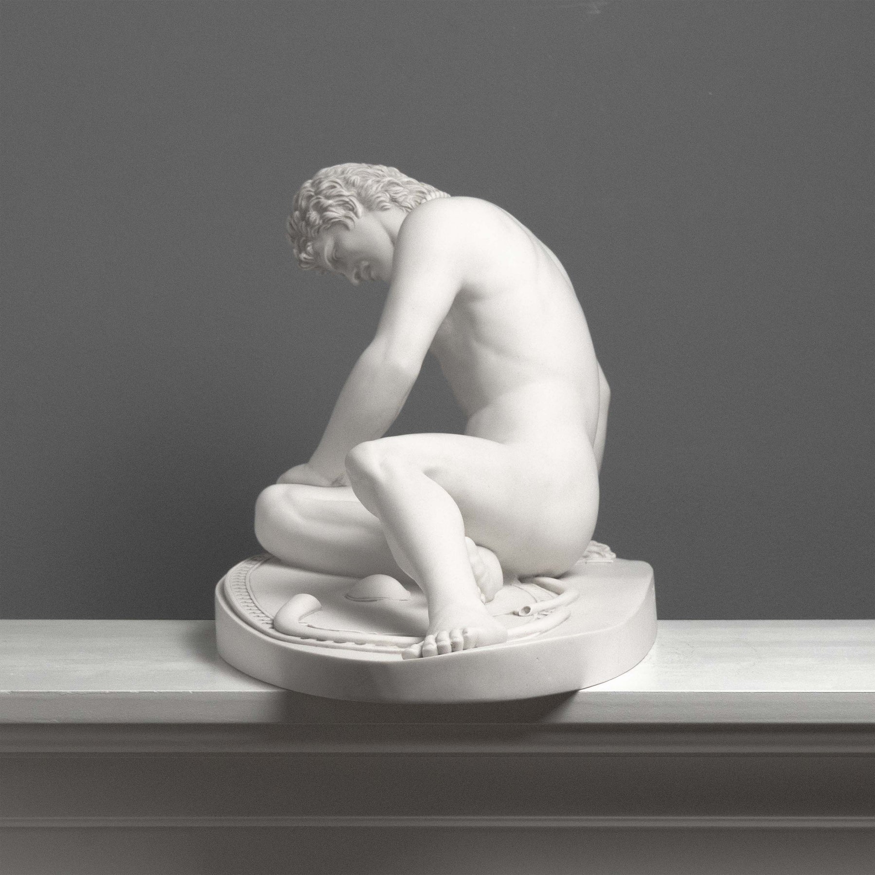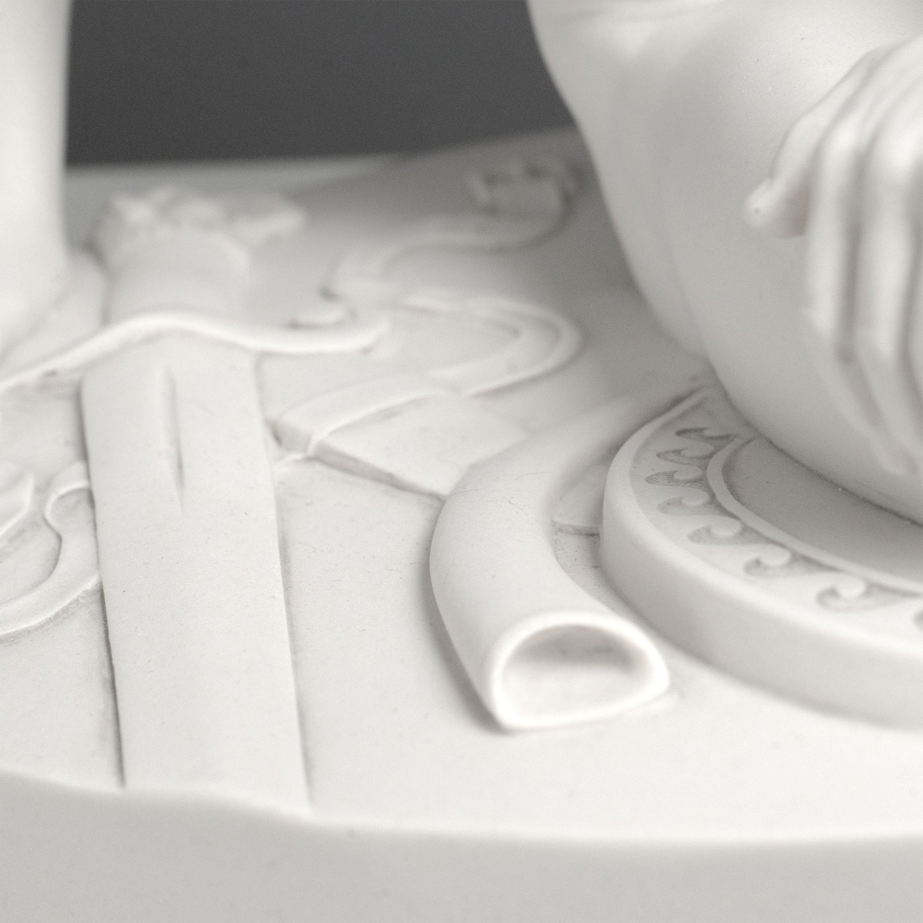 Nos sculptures sont réalisées selon un procédé unique et exclusif de moulage à sec. Composées de marbre blanc de Carrare, plus de 90% de chaque pièce est constituée de véritable poudre de marbre, offrant ainsi le rendu authentique et la sensation du marbre naturel.