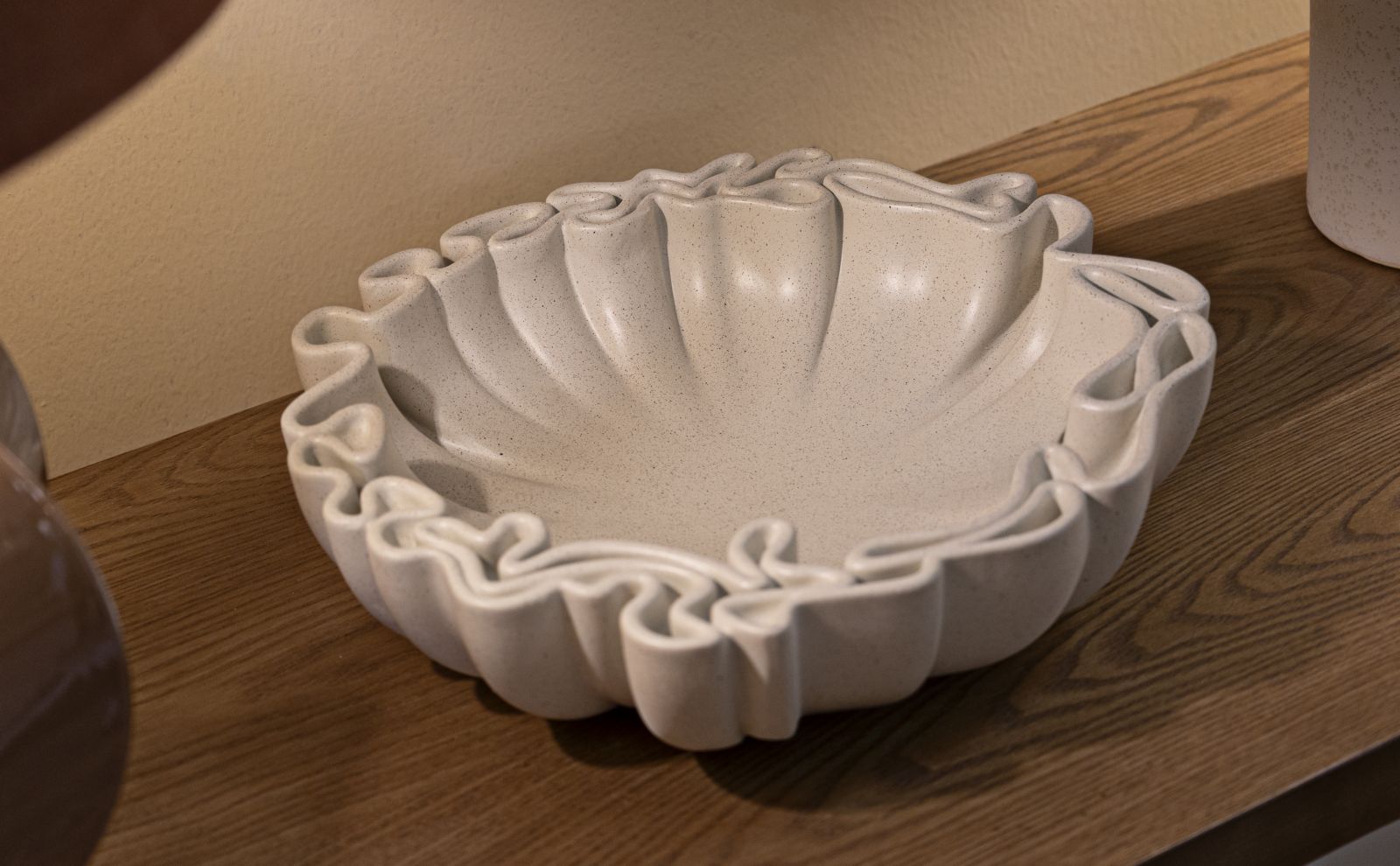 • Poche vide Stons 30,5x29x7,5, complément raffiné au design sculptural inspiré de la nature. Idéal pour ajouter du mouvement et du caractère aux mises en place contemporaines.Bougeoir en métal doré aux élégantes décorations florales.