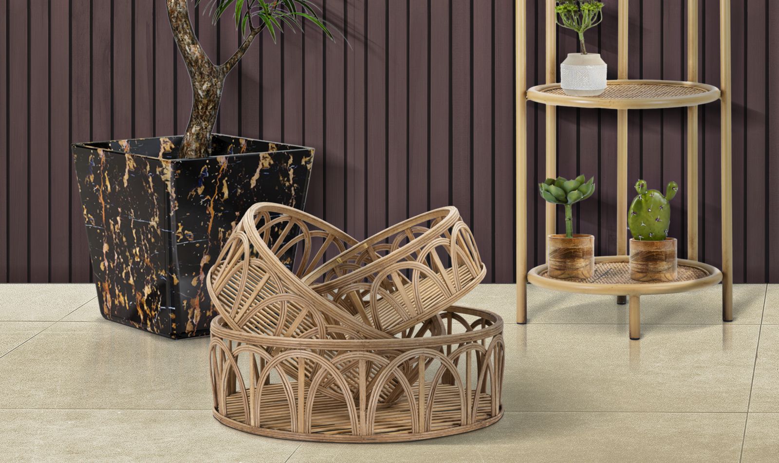 Lot de 3 plateaux de service en rotin – Collection décorative Fuji