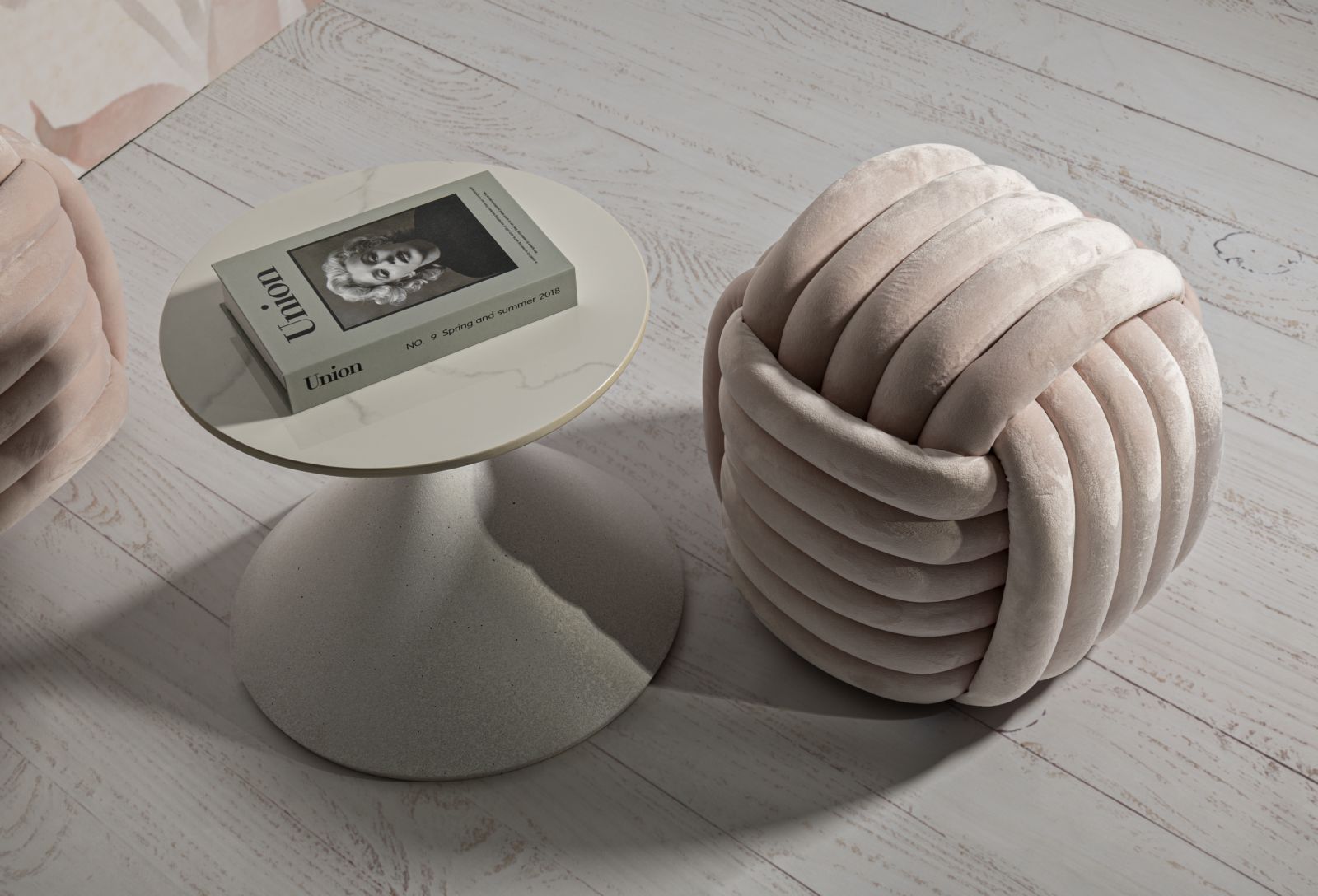 Pouf en velours rose – Siège d'appoint rembourré Sofy