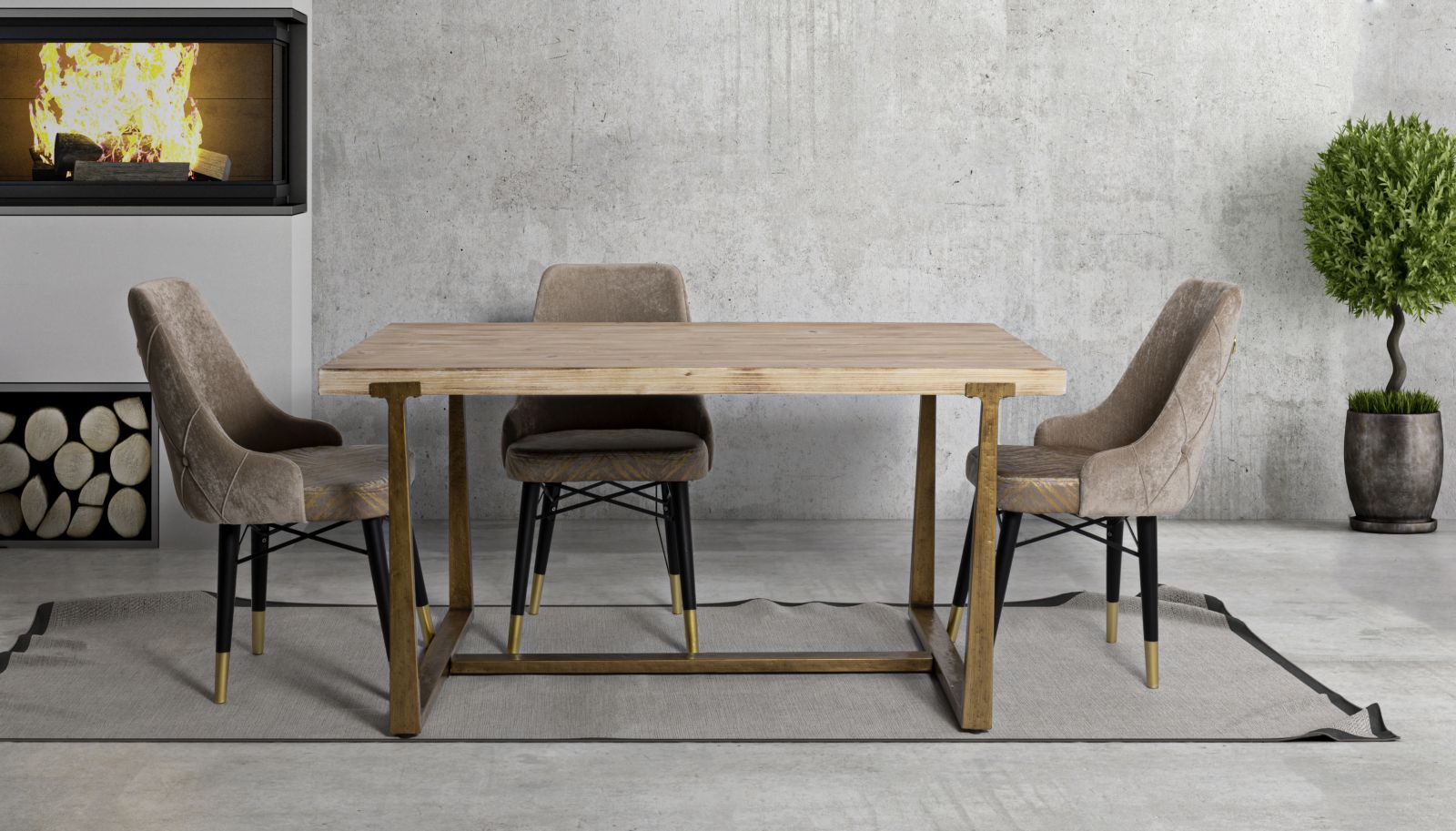 Table rectangulaire en métal et bois aux lignes simples et affirmées. Produit à assembler.Bougeoir en métal doré aux élégantes décorations florales.