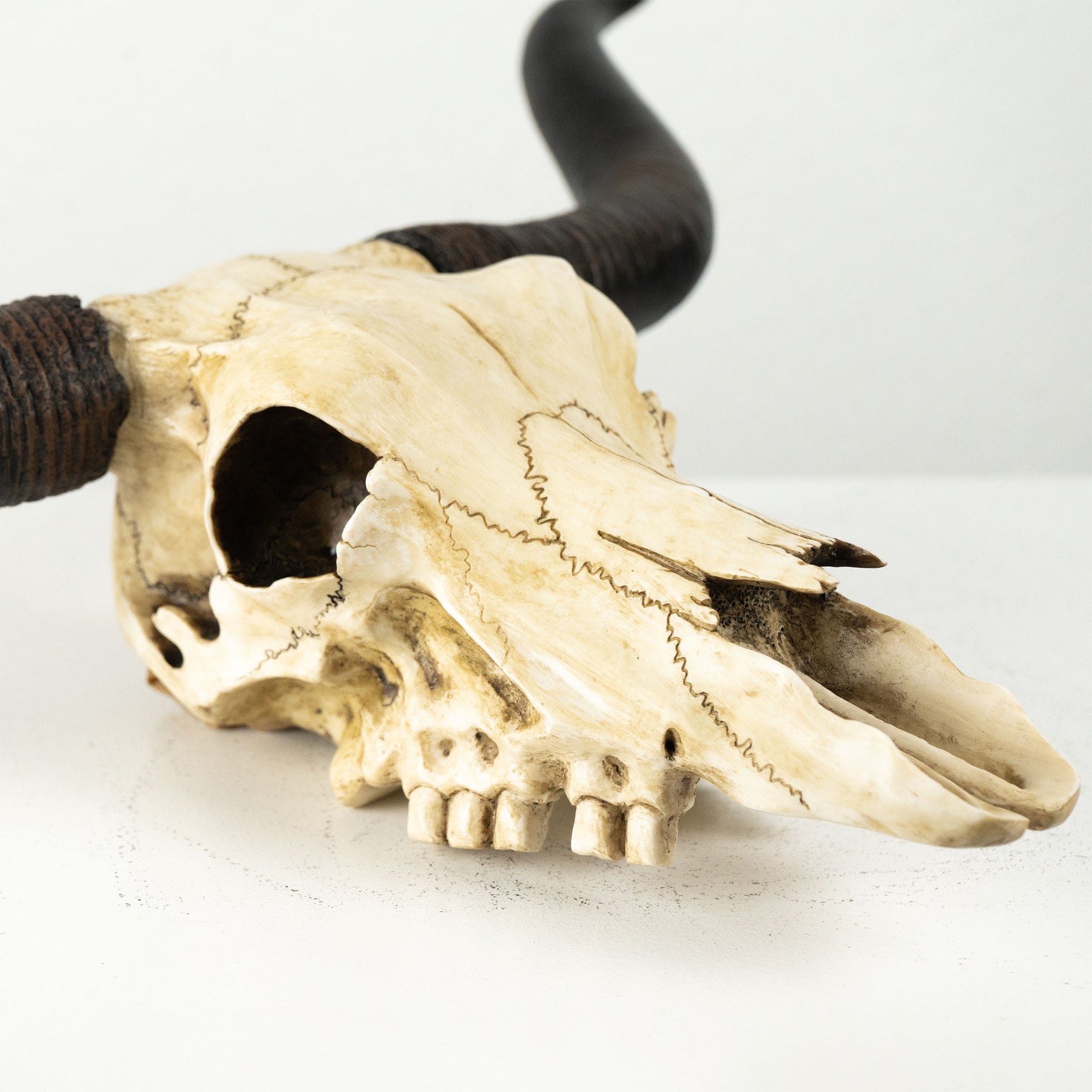 • Statue de crâne de Longhorn, réalisée en résine de haute qualité, capture la beauté brute et l’esprit intemporel de l’Ouest américain. Ses impressionnantes cornes, fixées à l’aide d’aimants dissimulés pour un maintien sûr et un retrait facile, ainsi que ses détails réalistes, en font une pièce maîtresse remarquable. Symbole de force, de résilience et de l’essence indomptée des grandes plaines, elle constitue une déclaration audacieuse dans tout espace rustique ou à thème western. Parfaite pour la décoration intérieure, les bureaux ou les collections inspirées par la nature et le patrimoine, cette sculpture apporte une touche d’élégance sauvage et de charme intemporel à tout environnement.