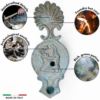 Nos lampes sont fabriquées selon un procédé exclusif de moulage à chaud. Réalisées en alliage cuivre-zinc de haute qualité, chaque pièce présente une superbe patine verte au fini vieilli, évoquant le charme intemporel des alliages anciens de cuivre et de bronze. Coulées à haute température (>1700°F / 900°C), ces lampes sont soigneusement finies à la main pour garantir un niveau de détail et une qualité exceptionnels. Témoignant d’une tradition d’excellence et d’artisanat, chaque pièce constitue un ajout unique et précieux avec un aspect vintage qui sublime aussi bien les intérieurs modernes que classiques.